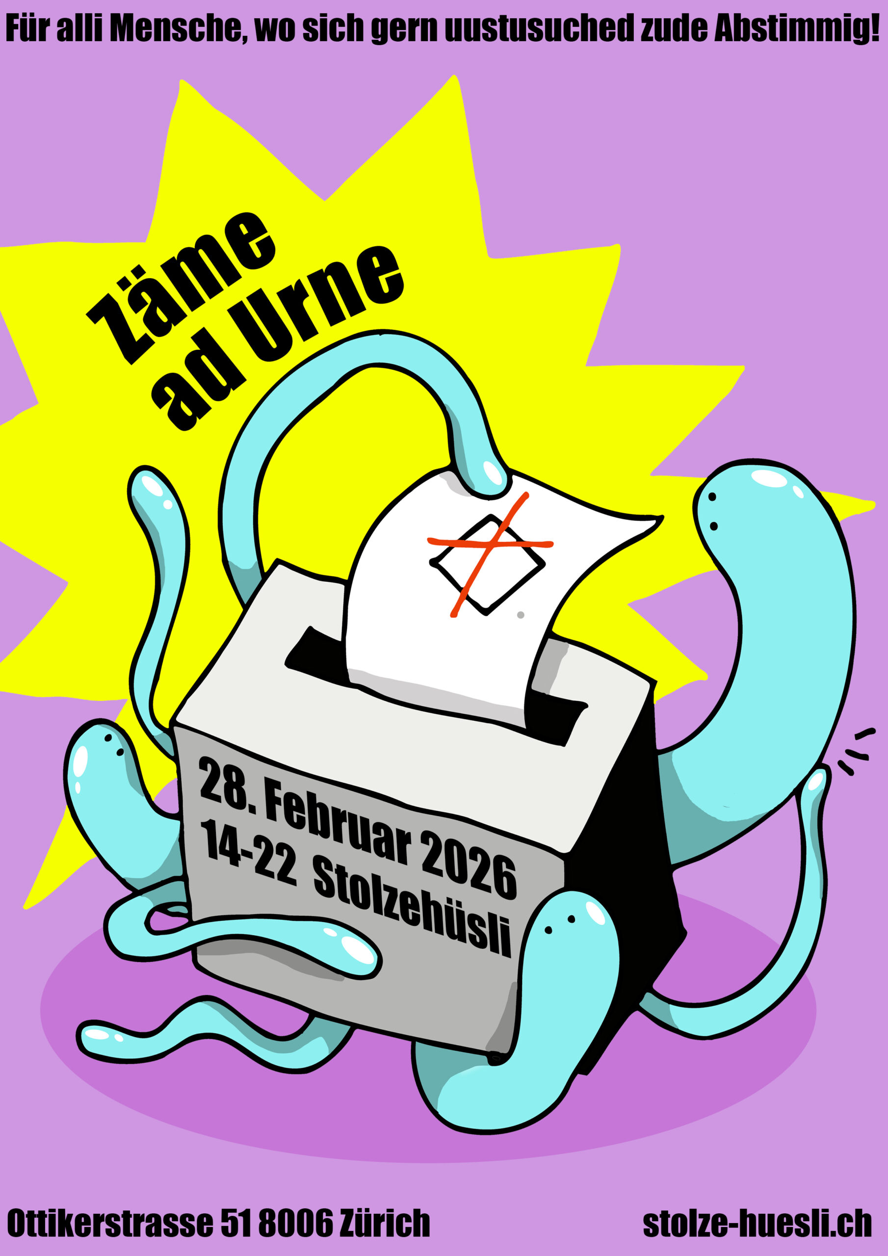 Am Samstag, 28.02., ist das Hüsli von 14:00 bis 22:00 Uhr geöffnet, um gemeinsam abzustimmen, uns auszutauschen und die Vorlagen der aktuellen Abstimmung vom 08.03. zu diskutieren. Vor Ort ist eine Person dabei, die sich gut auskennt und offen für Fragen, Gespräche oder eine verständliche Einordnung der Themen ist – egal, ob du schon entschieden […]