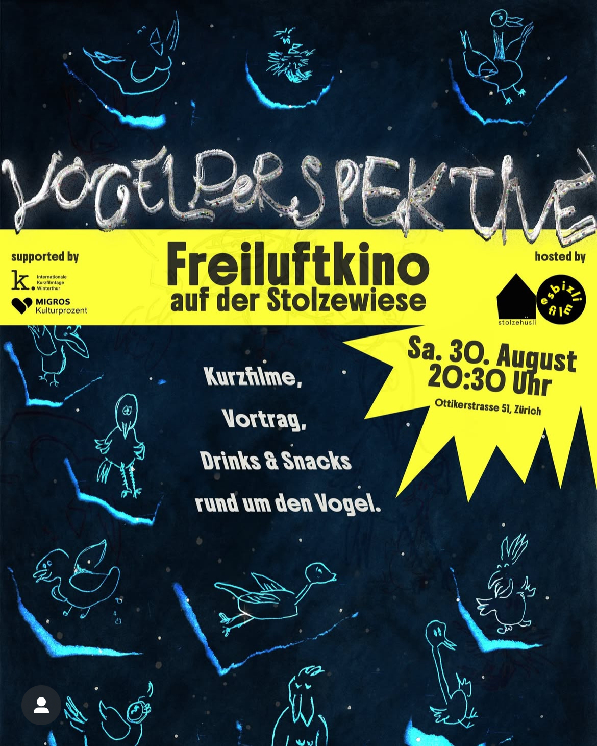 Bald ist es soweit! Gemeinsam mit esbizli film laden wir euch herzlich zu unserem ersten Filmabend unter freiem Himmel ein. Mit VOGELPERSPEKTIVE feiern wir in fünf Kurzfilmen unsere gefiederten Freund*innen – und alle Menschen, die sie zu schätzen wissen. Samstag, 30. August 2025 20:30 Uhr Stolzewiese, Zürich Gezeigt werden: LES MYSTÉRIEUSES AVENTURES DE CLAUDE CONSEIL […]